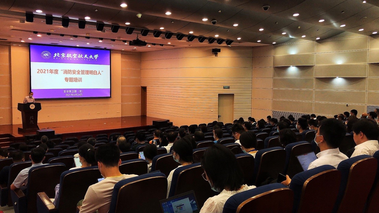 为提升消防安全管理人员的责任意识,夯实基层消防安全治理能力,更好地履职尽责做好消防安全管理工作,2021年6月24日下午,我校2021年度“消防安全管理明白人”专题培训会在新主楼第二报告厅举行,学校各教学科研单位、消防重点单位及负有消防安全监督管理职责部门的相关管理人员共计100余人参加。